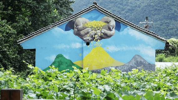 r走进陕西西安鄠邑区蔡家坡村,如同漫步在艺术长廊,两边的墙壁上随处都可以看到绘有最朴实乡村生活的画景。